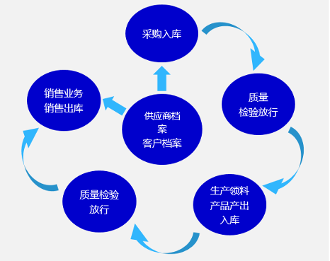 实现了从采购→质量→生产→质量→销售的业务流程闭环,顺利获得上下游单据的关联,可以更好的进行信息追溯,实现多业务之间的协同管理。