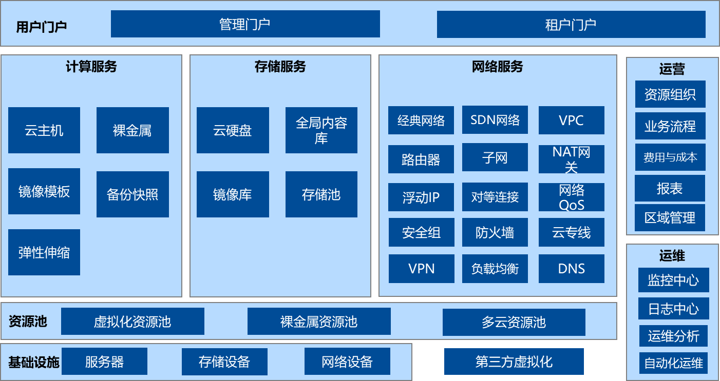 1、统一权限管理体系:(1)三大基础角色:系统管理员、VDC管理员(租户)、VDC用户;(2)不同角色用户具有不同的操作权限,更加安全;(3)支持灵活的角色权限自定义